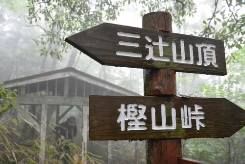 「頂上行かんでねぇ」 行っても真っ白だろう。今日の主役は梅雨雲の中やろうね。 ◆古の道 標高約1100mの三辻山は日本の山毛欅の南限の一つで特に樫山峠までの北斜面には原生の森が保たれている。 ◆石積がある道 四国山地の南に位置する土佐は雨に恵まれた山…