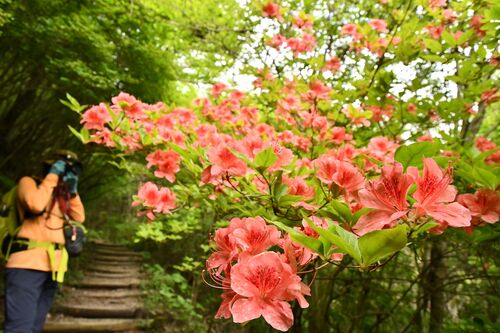 「雄しべが五つが山躑躅 雄しべが十が御躑躅」 複雑な地形の生える処によって花期が変わる山は長く花を楽しめる。 ◆咲き散ること 「桜やね」 雑木林に入る道や草に舞い降りた花びらが乗っている。 「あれや!」 若葉の向こうに山桜色が見える。 三辻の桜に期…