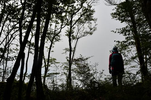 「真っ白けっけ」 南斜面の植林伐採で太平洋に視野が開けた処。 山雲が来たな。 ◆雲を観る この雲は太平洋の暖気が山に当たり姿を現したものでまだ寒気の訪れは感じないから俄雨や雷の心配はなさそうだ。 ◆森の中のもう一つの森 「風が変わるね」 杣の道はこ…