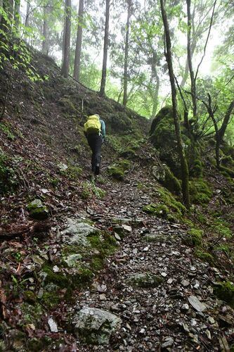 雨上がりの空気だな。 まだ樹々が雫を纏う登り口。空の雲の動きは遅いが明るく回復することを教えてくれた。 ◆登り口のこと 「ブヨはおるね」 静かな標高約900mの登り口の湿気はあるが気温18℃はいい感じだ。 雨は強くなかったかな。 僕は半ズボンで正解。 そ…