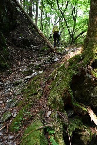 「えい風吹き上がりゆう」 山道は深山の滝を成す大岩右岸の急な岩盤を登り自然森が広がる滝頭に上がる。 ◆滝の頭に上がる 「サワアジサイ咲いた」 渓は植物にも水と風を運び厳しい急峻な岩盤にあっても生きられる命たちがいる。 龍王の滝の滝頭にある三段の…