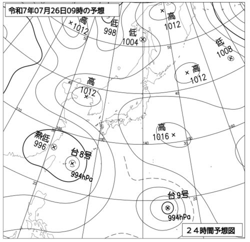 太平洋高気圧に覆われ北海道から九州の広い範囲で晴れて厳しい暑さが続くが昇温によって大気の状態が不安定になるため内陸や山沿いは急な俄雨や雷雨に注意だろう。 ◆空を観るこの後も高気圧に覆われて晴れる地域が多く接近する台風8号は発達した台風ではな…