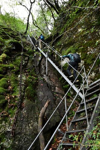 祖先が真理を求めた大岩に架けられた鎖場を登り真の清水出流森を目指した。 ◆滝頭に上がる 真名井の滝の滝頭にももう一つの滝があり季節ごとの掛け軸の様な風景を見せてくれる。 落ち葉が増えて来たなぁ。 ◆鎮めること 渓からいい風が吹き上がる大岩の頭の一…